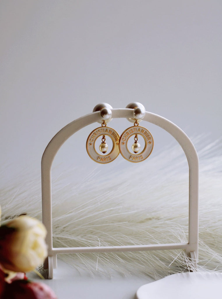 - 3.5 cm long in total. Dangle charm is approximately 2 cm around. There is also a small pearl dangling inside the charm circle which makes these earring very unique.