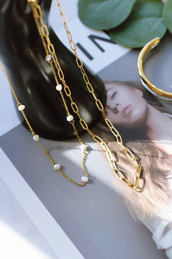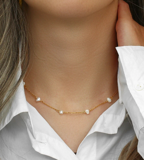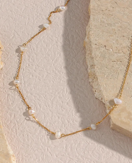 ARIA DAINTY PEARL NECKLACE (WATERPROOF & 18K GOLD PLATED)