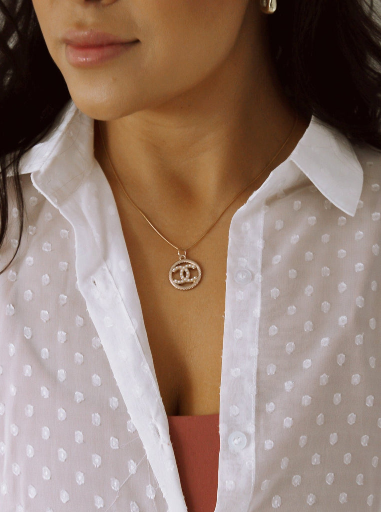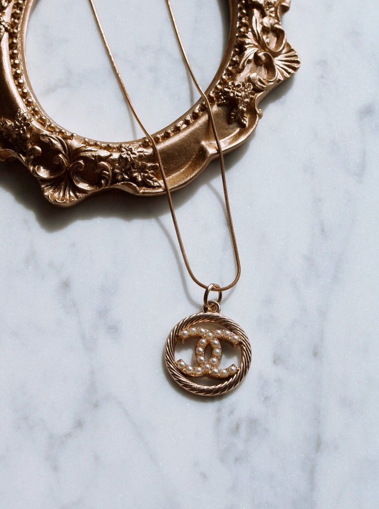 - Charm is a 2.5 cm circle gold rope with pearl accents. Stamped on back of charm for authenticity.