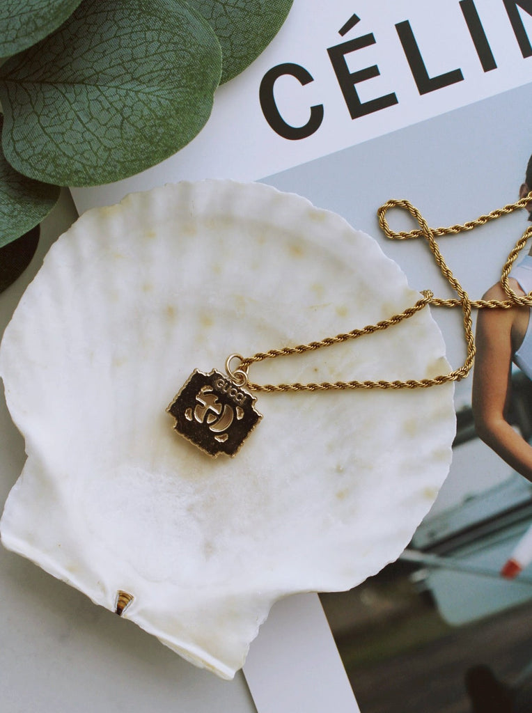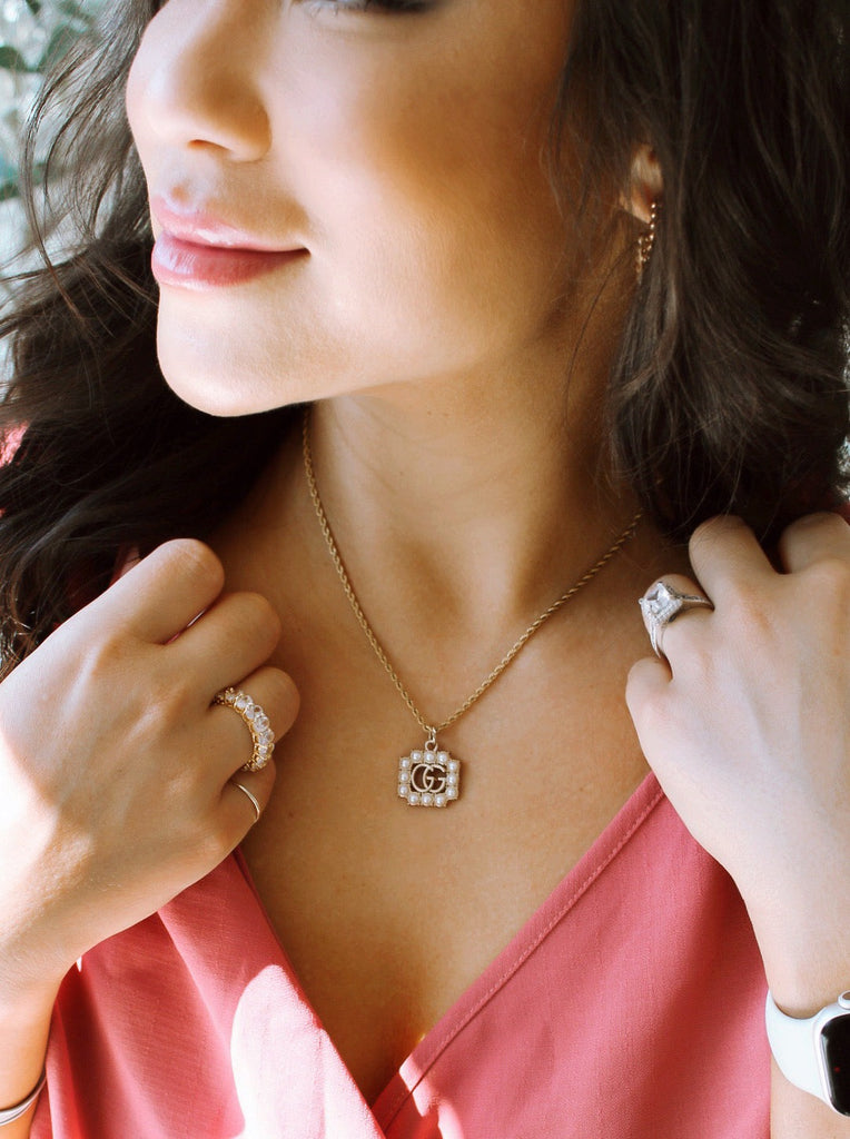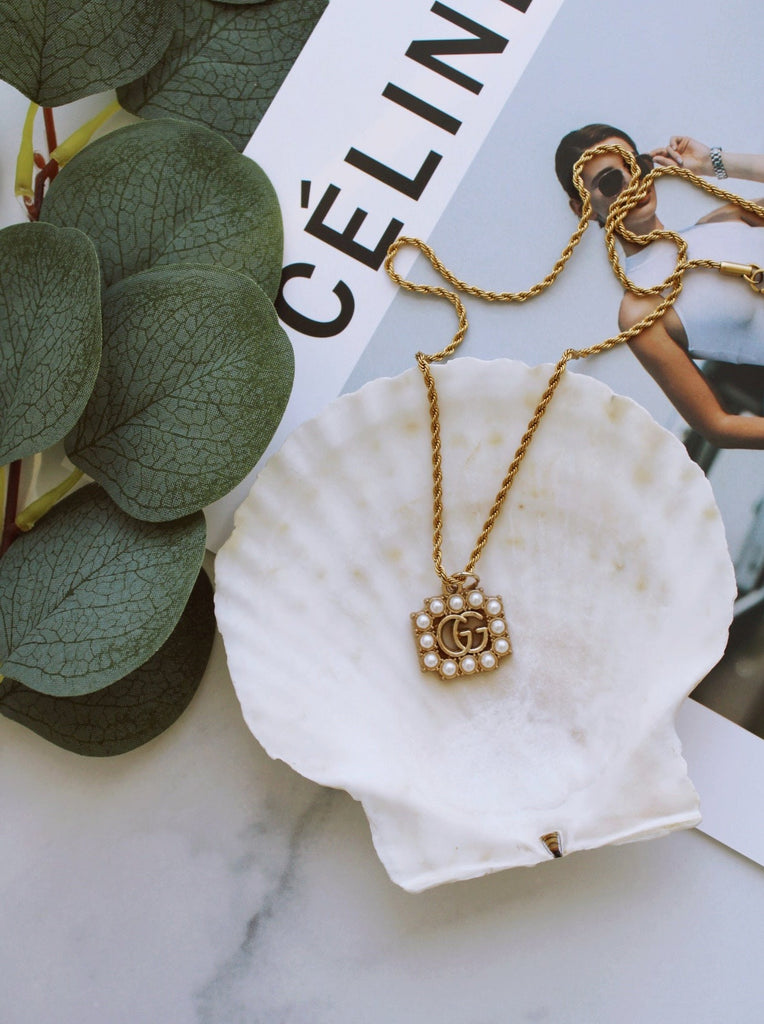Authentic vintage designer charm with pearl accents repurposed on a Stainless Steel + 18K Gold Plated Necklace. It's one of our "go with everything, never take it off" pieces.