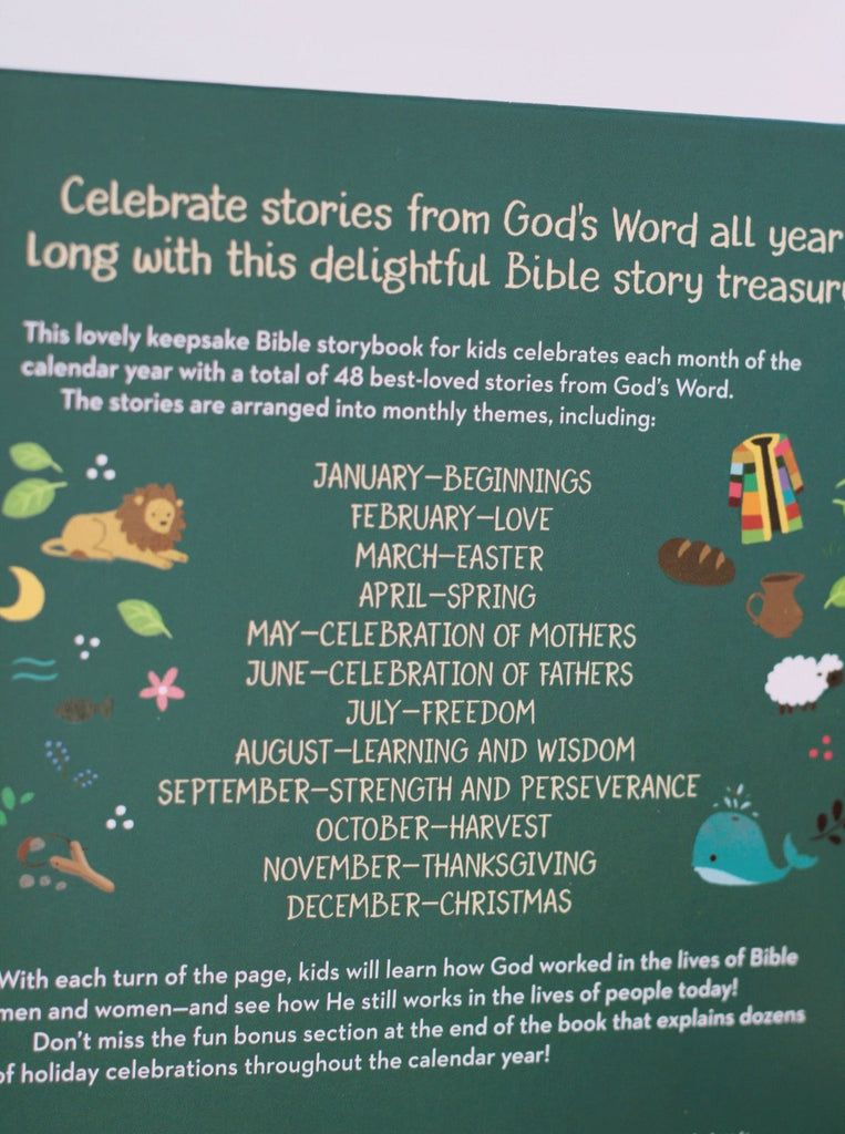 A Year of Bible Stories Is Sure to Become a Storytime Favorite in Your House! This lovely keepsake Bible storybook for kids celebrates each month of the calendar year with 48 best-loved stories from God's Word.