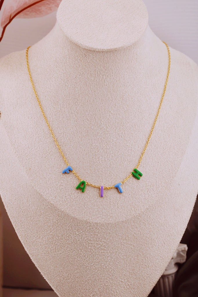 FAITH Enamel Letter Necklace (45 cm – Stainless Steel & Waterproof)