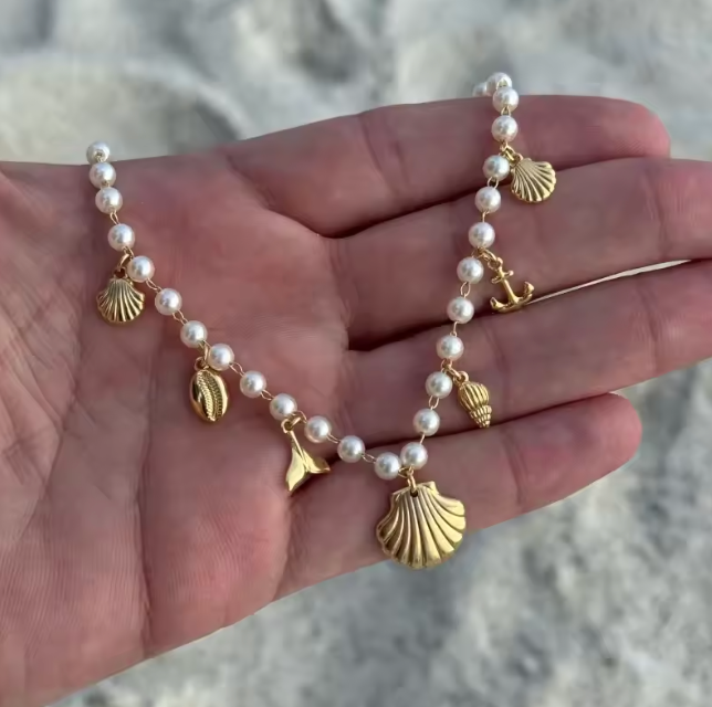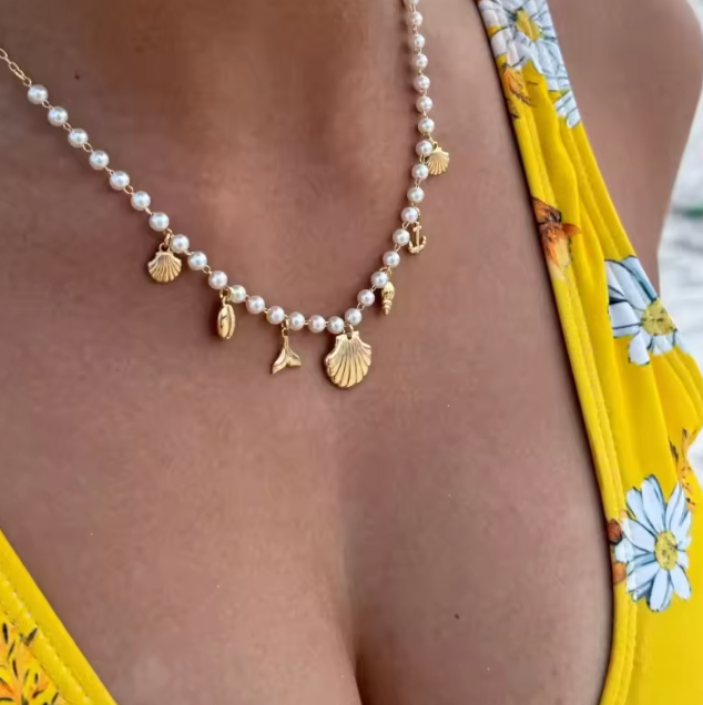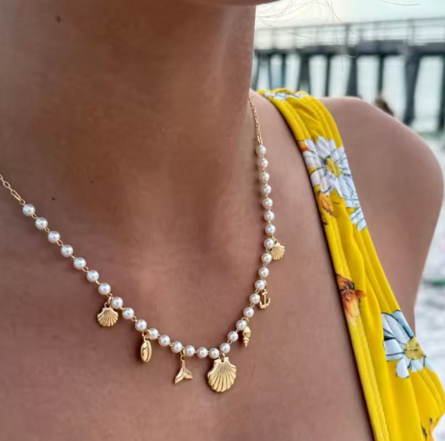 The Vitamin Sea Necklace is your summer go-to — featuring a delicate freshwater pearl and gold shell charm on a fine waterproof chain. Whether you're poolside, on vacation, or just craving a little sunshine, this necklace brings the beach with you.