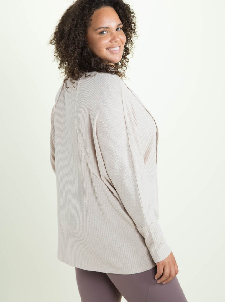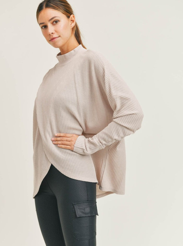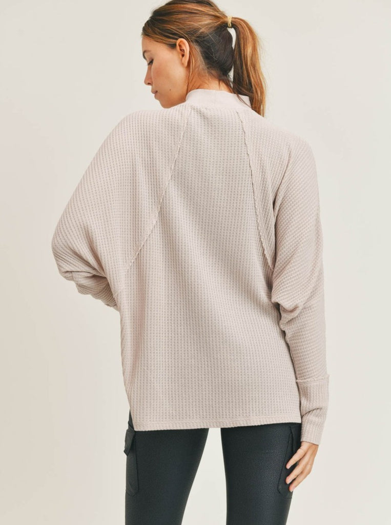 * It comes with a mock neck, long sleeves, and an all-over waffled knit paired with ribbed accents.