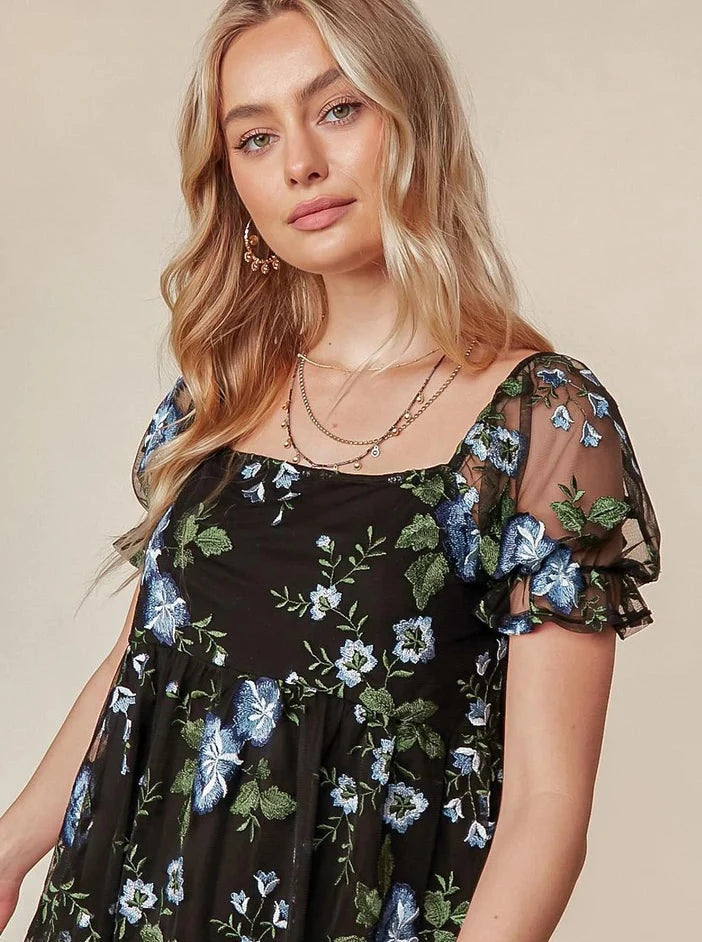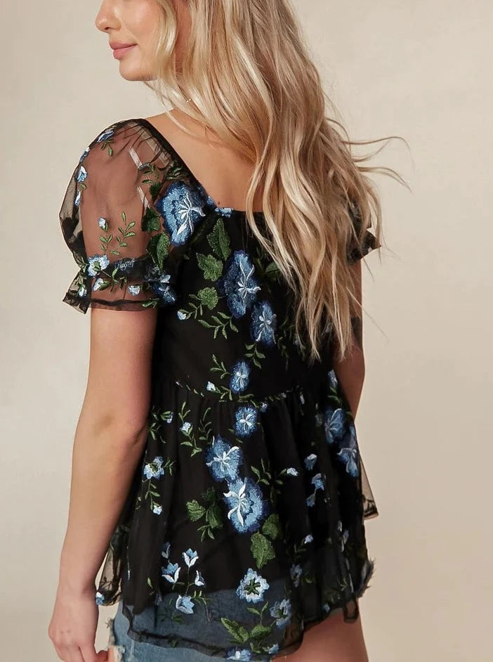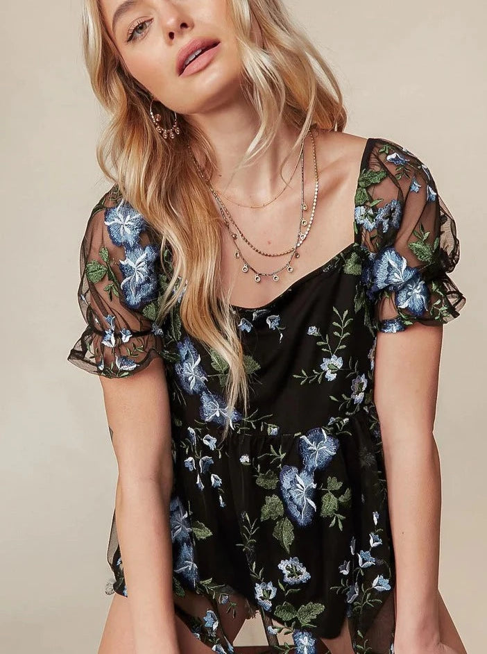 FLORAL EMBROIDERED BABYDOLL WOVEN TOP