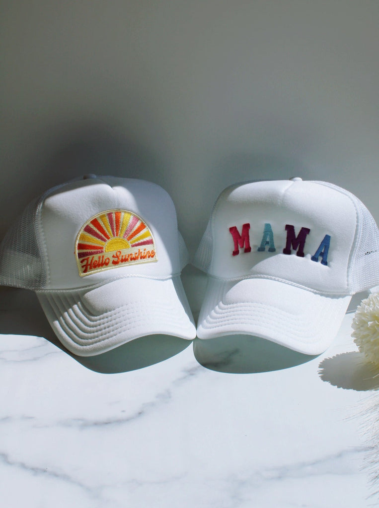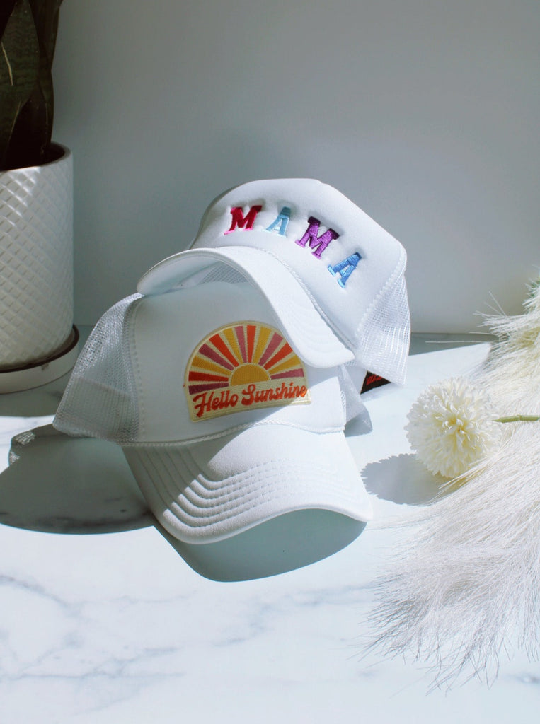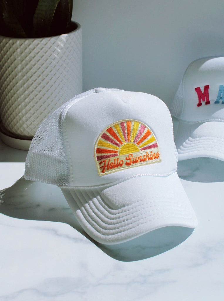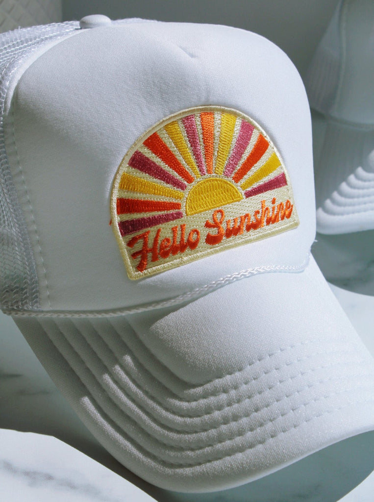 HELLO SUNSHINE TRUCKER HAT IN WHITE - FINAL SALE