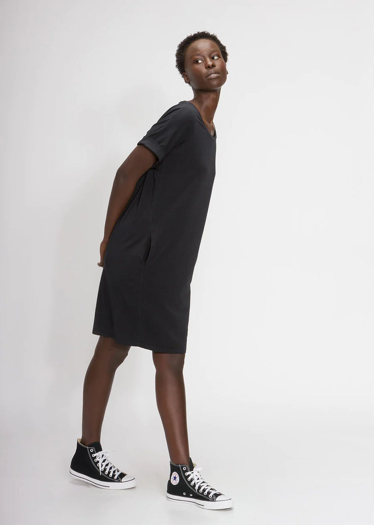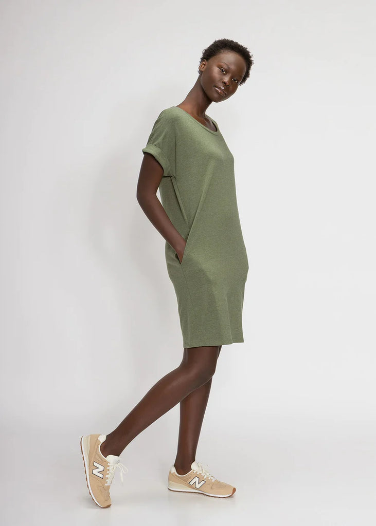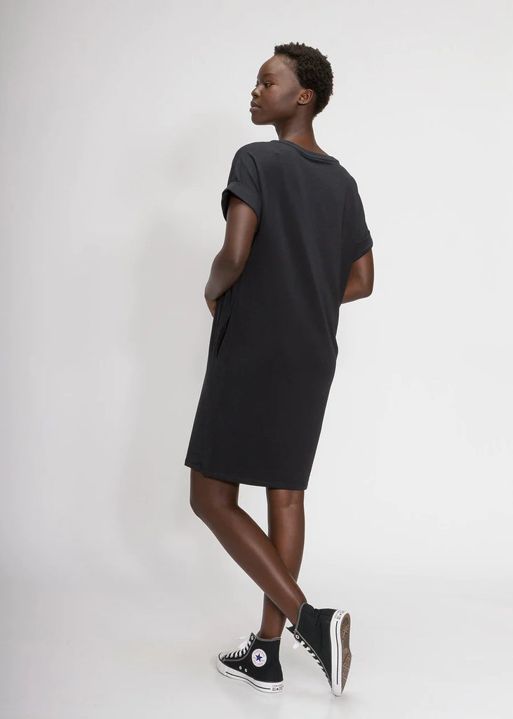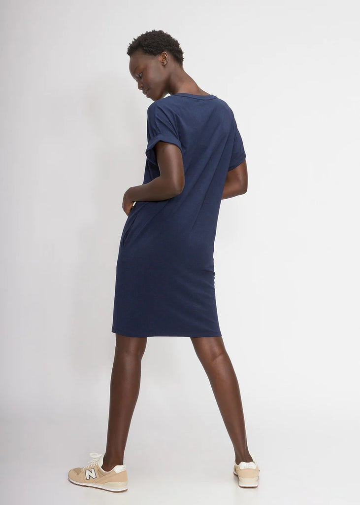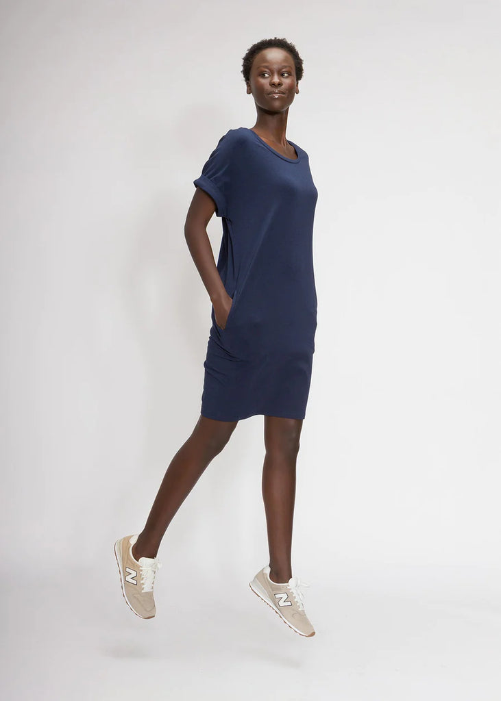 Our bestselling relaxed t-shirt dress is built with the highest quality sustainable materials for a soft, comfortable feel. With just the right balance of structure and stretch, this dress with pockets will be a long-lasting staple in your closet.