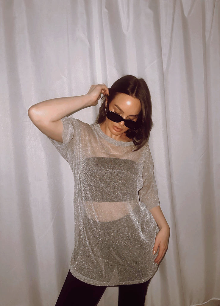 VIRGO OVERSIZED GLITZY MESH TOP (TOP ONLY) - FINAL SALE
