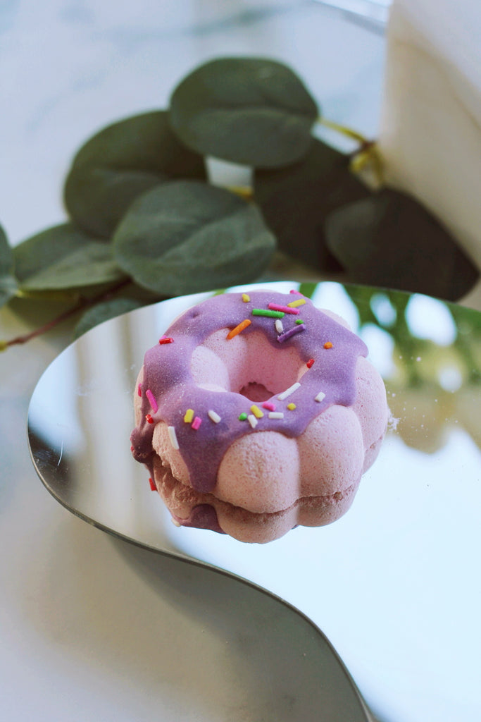 Indulge in a unique bathing experience with our Donut Bath Bomb. Handmade with care, this bath bomb features a body soap icing that not only adds a fun twist but also nourishes your skin. Enjoy the benefits of a bath bomb and body soap in one product.