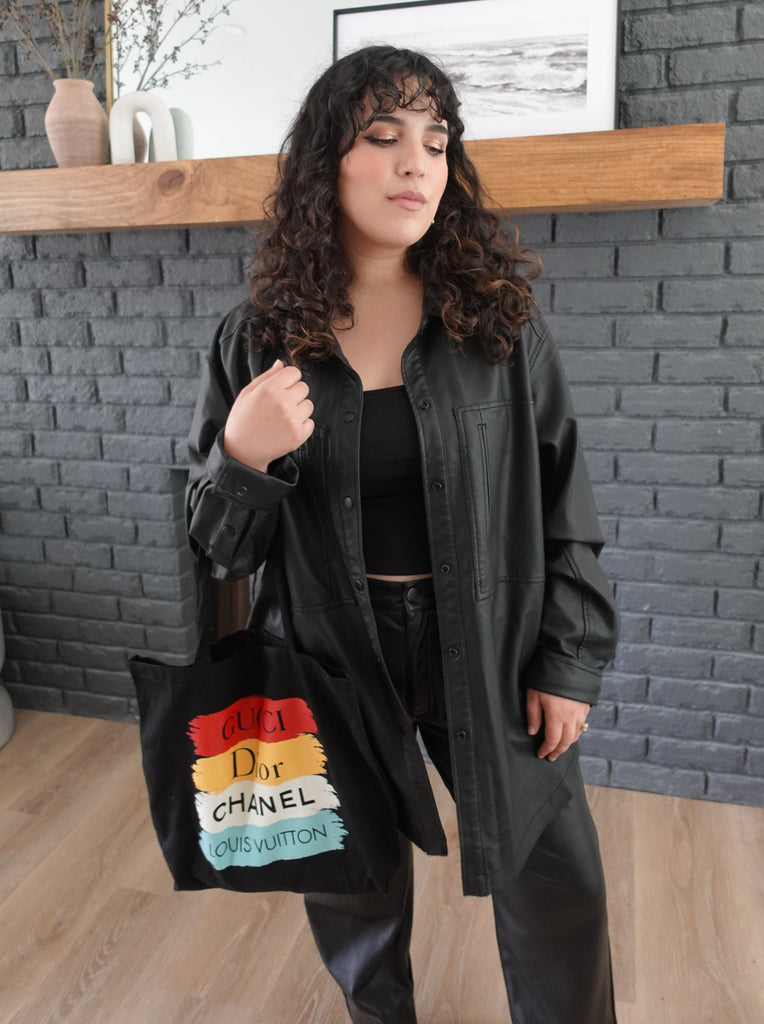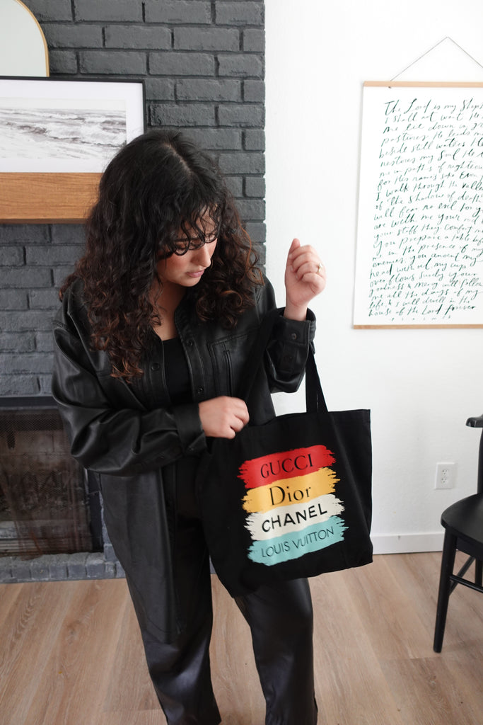 The LAYLA Tote Bag is a designer inspired, luxurious, and versatile cotton bag. It is constructed with top-quality materials to ensure it is long-lasting and reliable, capable of carrying all of your essentials in style. Perfect as an everyday or travel bag. Reinforced base and webbed handles provide heavy-duty support. Easily fits over shoulder.