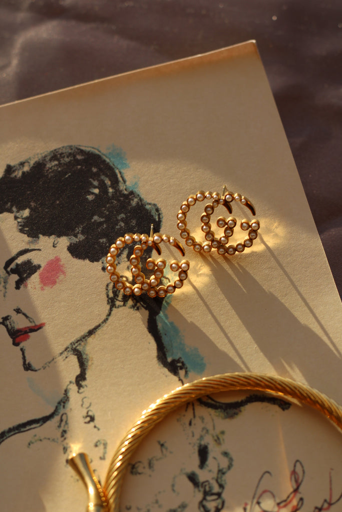 - Also shown: Gabriel Earrings in Pearl for size reference.