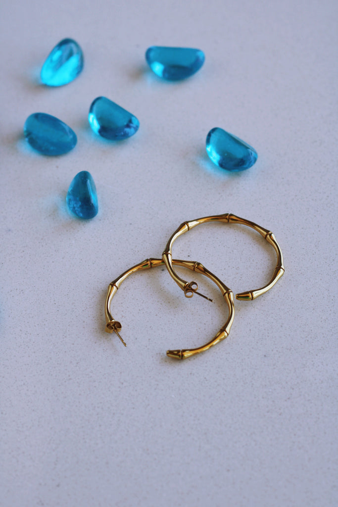 MORGAN BAMBOO HOOPS IN GOLD (WATERPROOF & 18K GOLD PLATED)