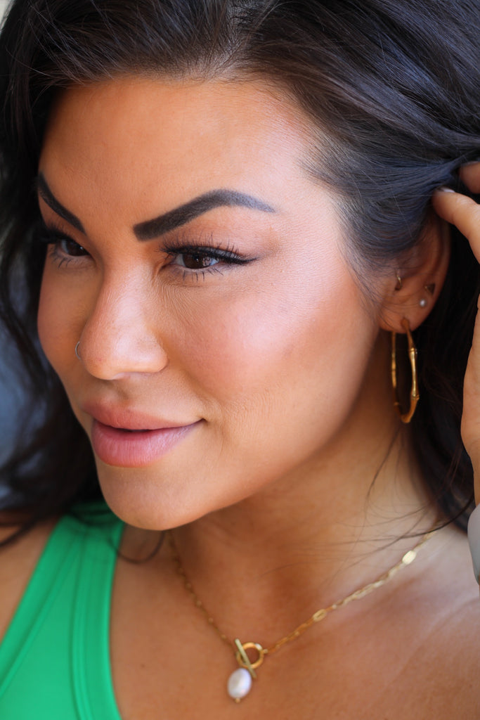 The MORGAN HOOPS in Gold are lightweight, chic, and minimalistic earrings perfect for everyday wear. The trendy design and sensibility makes them perfect for those with sensitive ears.