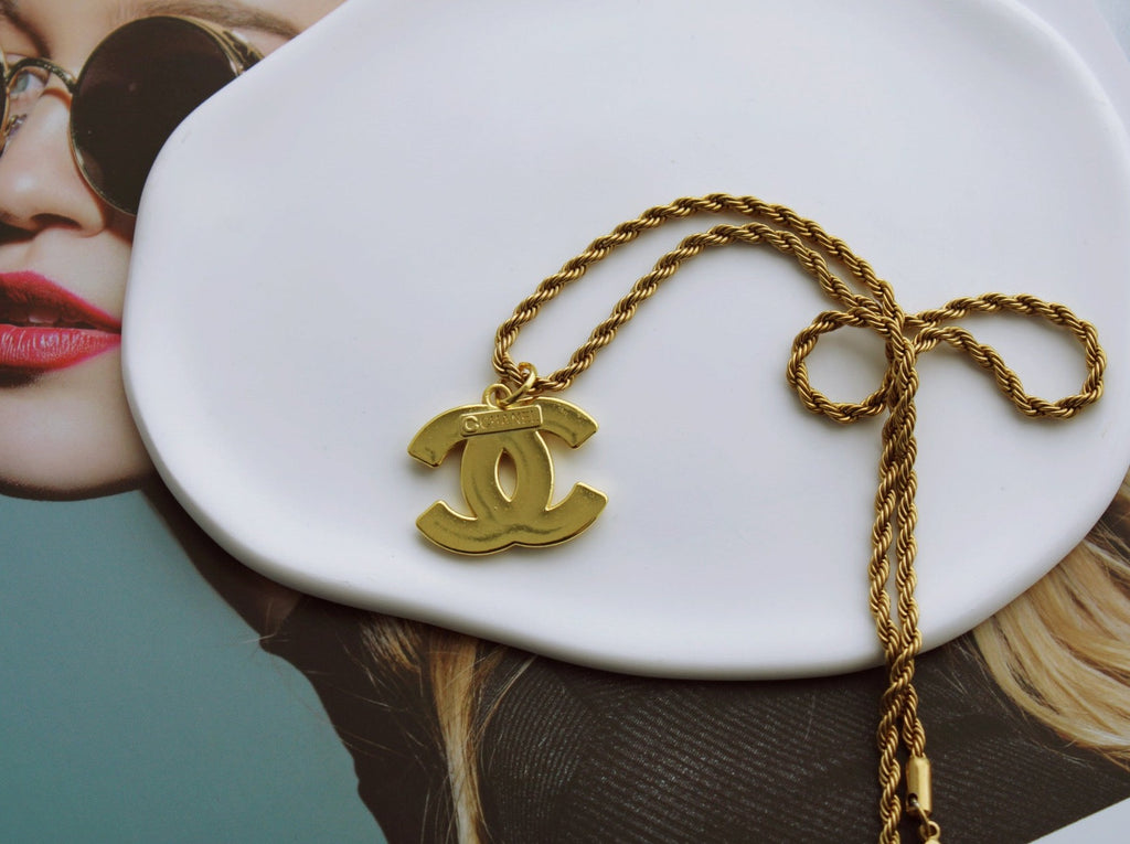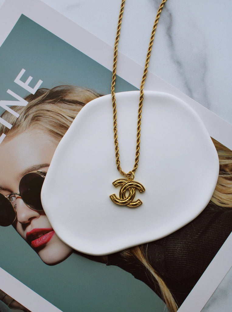 Authentic vintage gold charm repurposed on a stainless steel + 18K gold plated rope chain necklace.