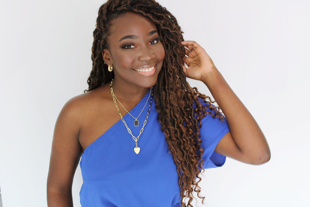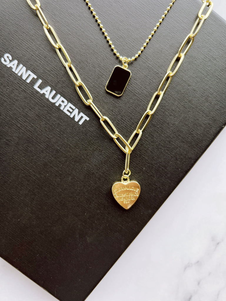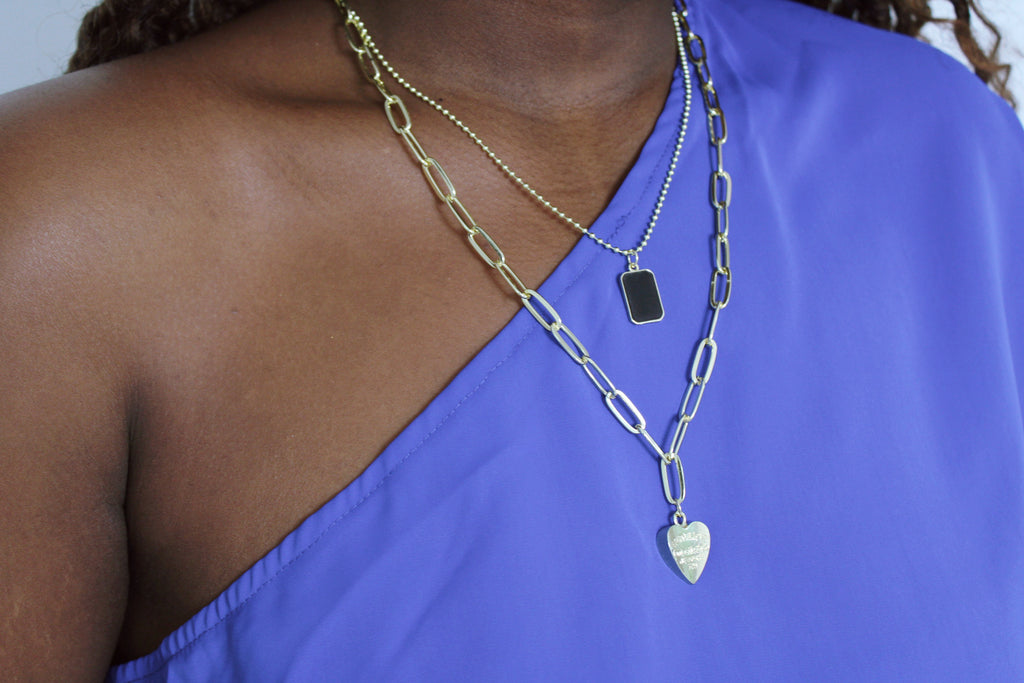 OUR ETERNAL LOVE NECKLACE SET COMES WITH A PAPERCLIP CHAIN WITH HEART CHARM + BALL CHAIN NECKLACE WITH BLACK PENDANT DETAIL