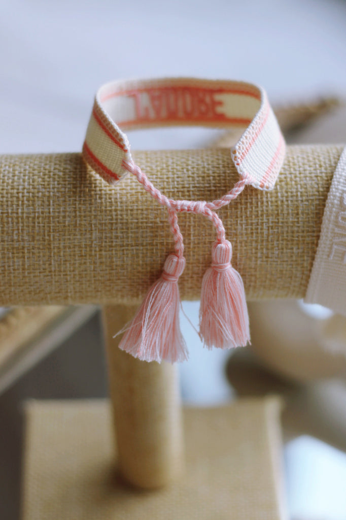 Expertly crafted with a vintage-inspired design, the J'ADORE Woven Bracelet in Pink adds a touch of elegance to any outfit. Made with adjustable rope and featuring a braided tassel, this bracelet is a must-have for any stylish woman.