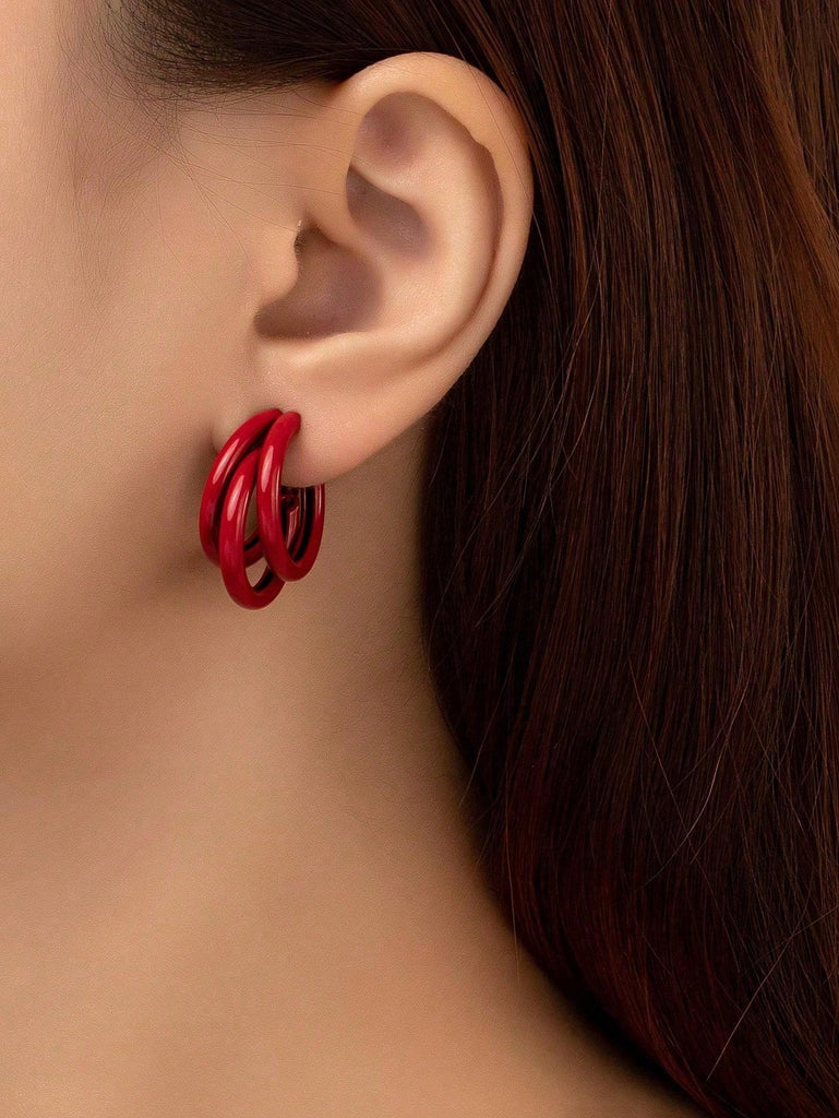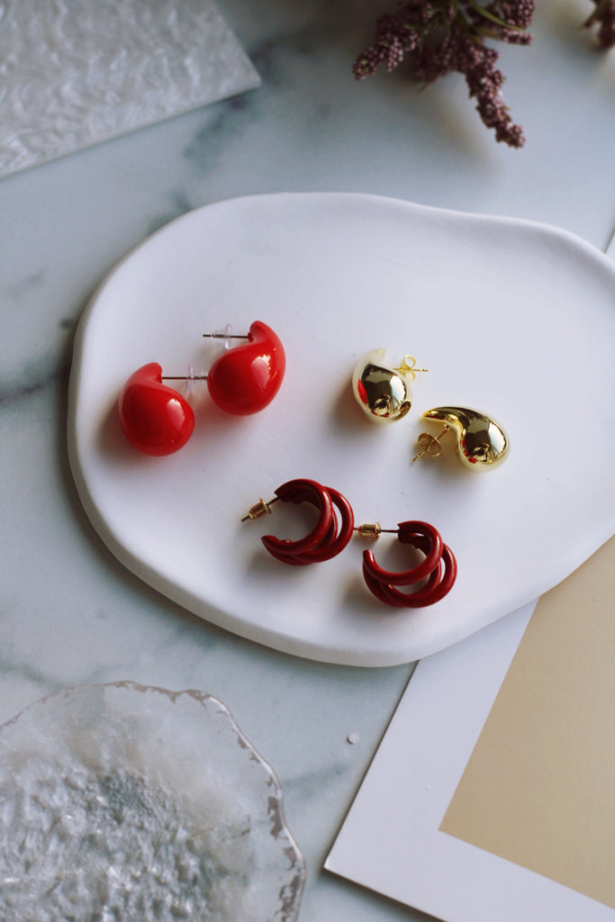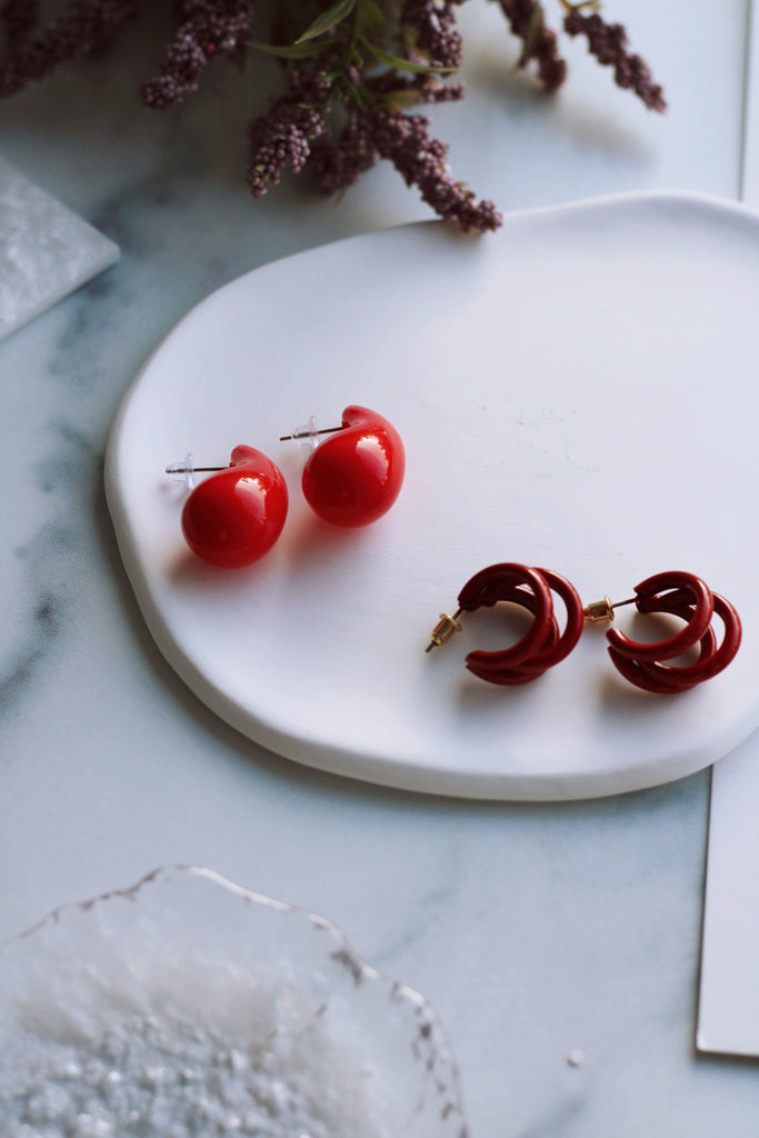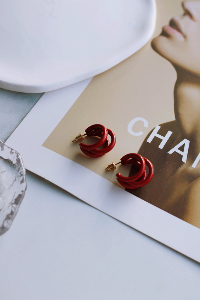 MINI VIVIAN TRIPLE HOOPS IN RED - FINAL SALE