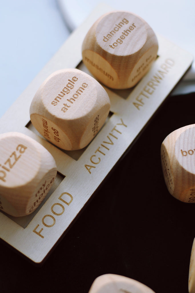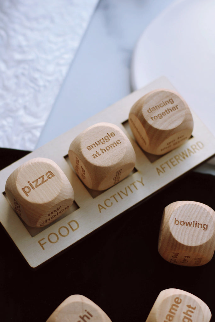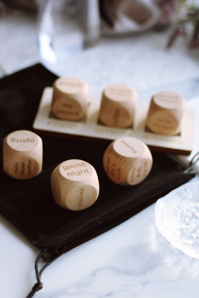 Elevate your date nights with Date Night Dice! These romantic dice for couples offer an exciting twist to your intimate moments. With a simple roll, these dice provide endless date ideas, perfect for cozy evenings together. No more wondering what to do, let Date Night Dice guide your next romantic adventure. Comes in velvet bag for easy storage
