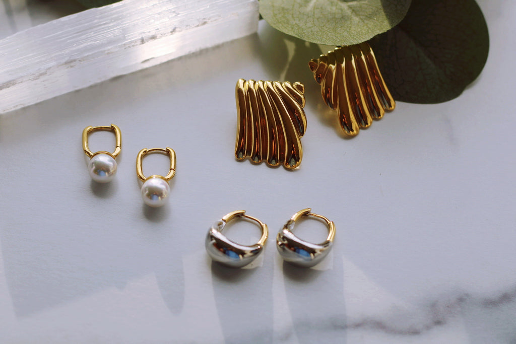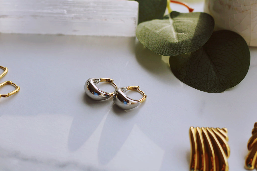 GRACE DROP HOOPS (WATERPROOF & 18K GOLD & WHITE GOLD PLATED)