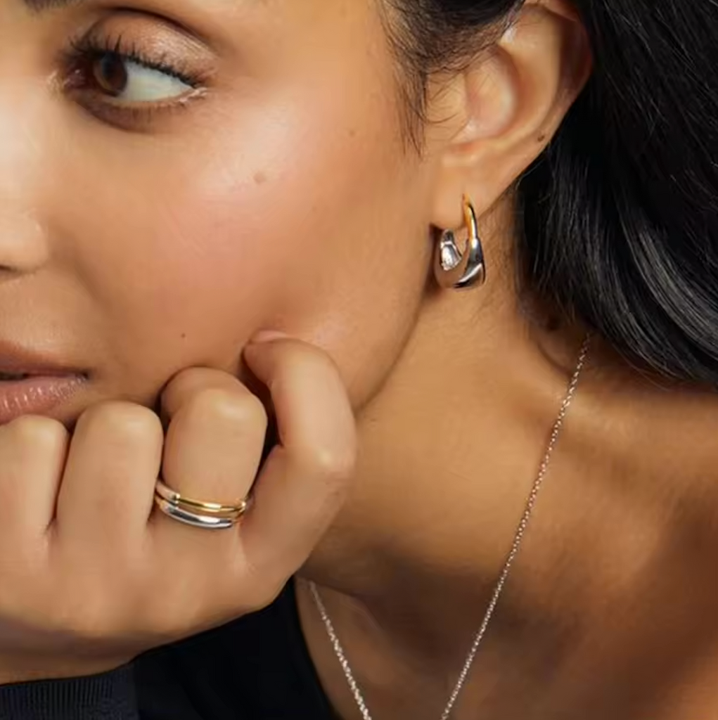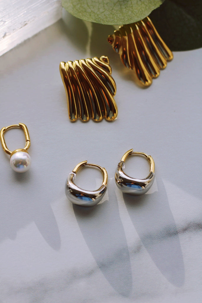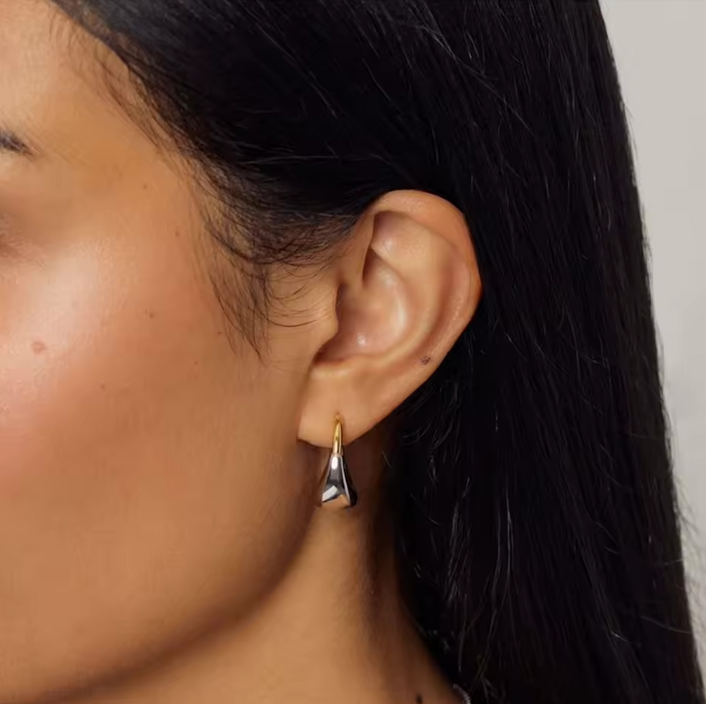 Introducing GRACE DROP HOOPS - the versatile, stylish hoops that elevate any look. These classic hoops with a twist feature a mix of 18k gold and white gold plating, making them tarnish-free and waterproof. Perfect for any occasion, these hoops add a touch of elegance and sophistication.